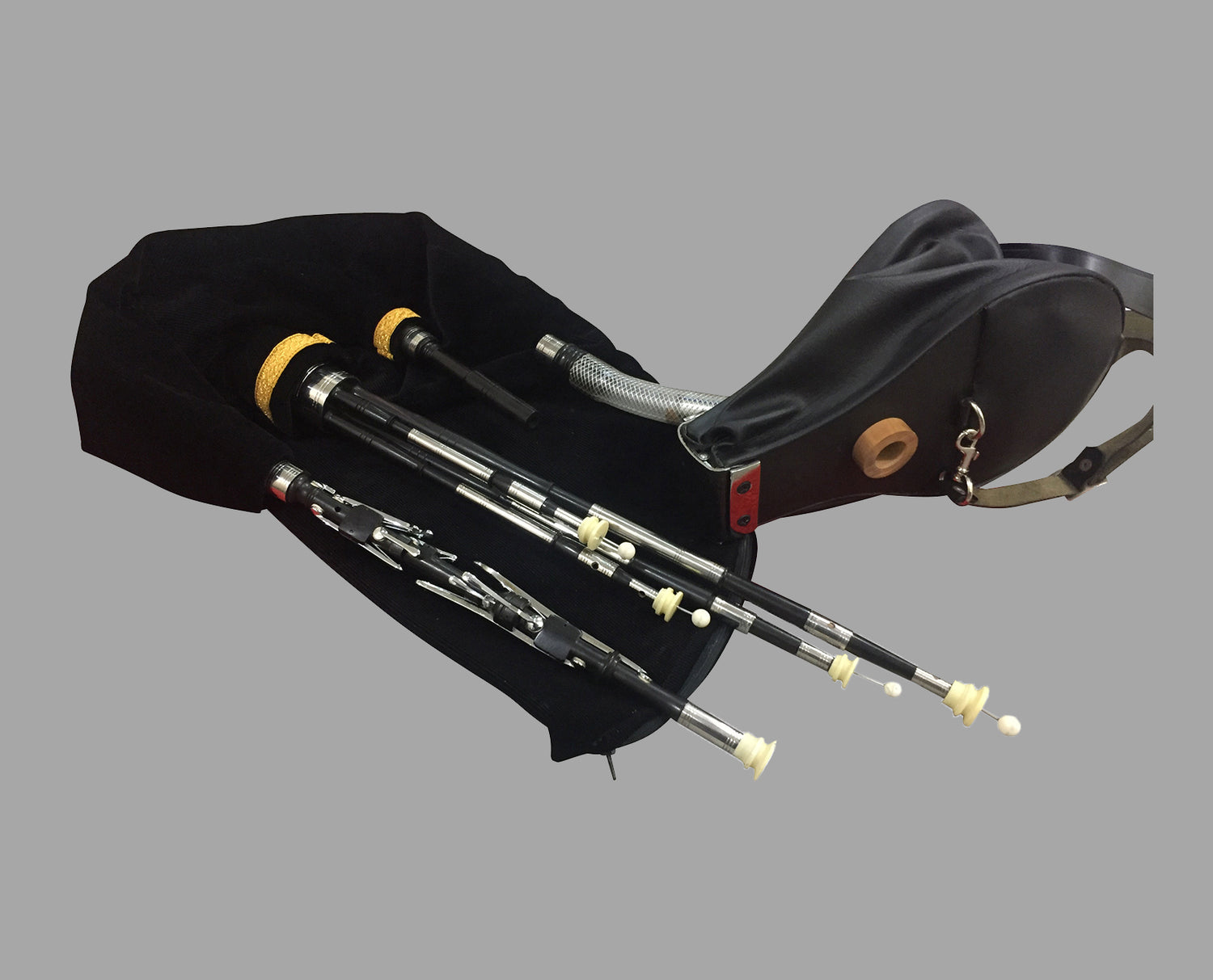 The Irish Uilleann Pipes offer a sweeter, softer tone than the Highland Pipes. They are bellows-blown and well-suited for traditional Irish music and indoor performances.