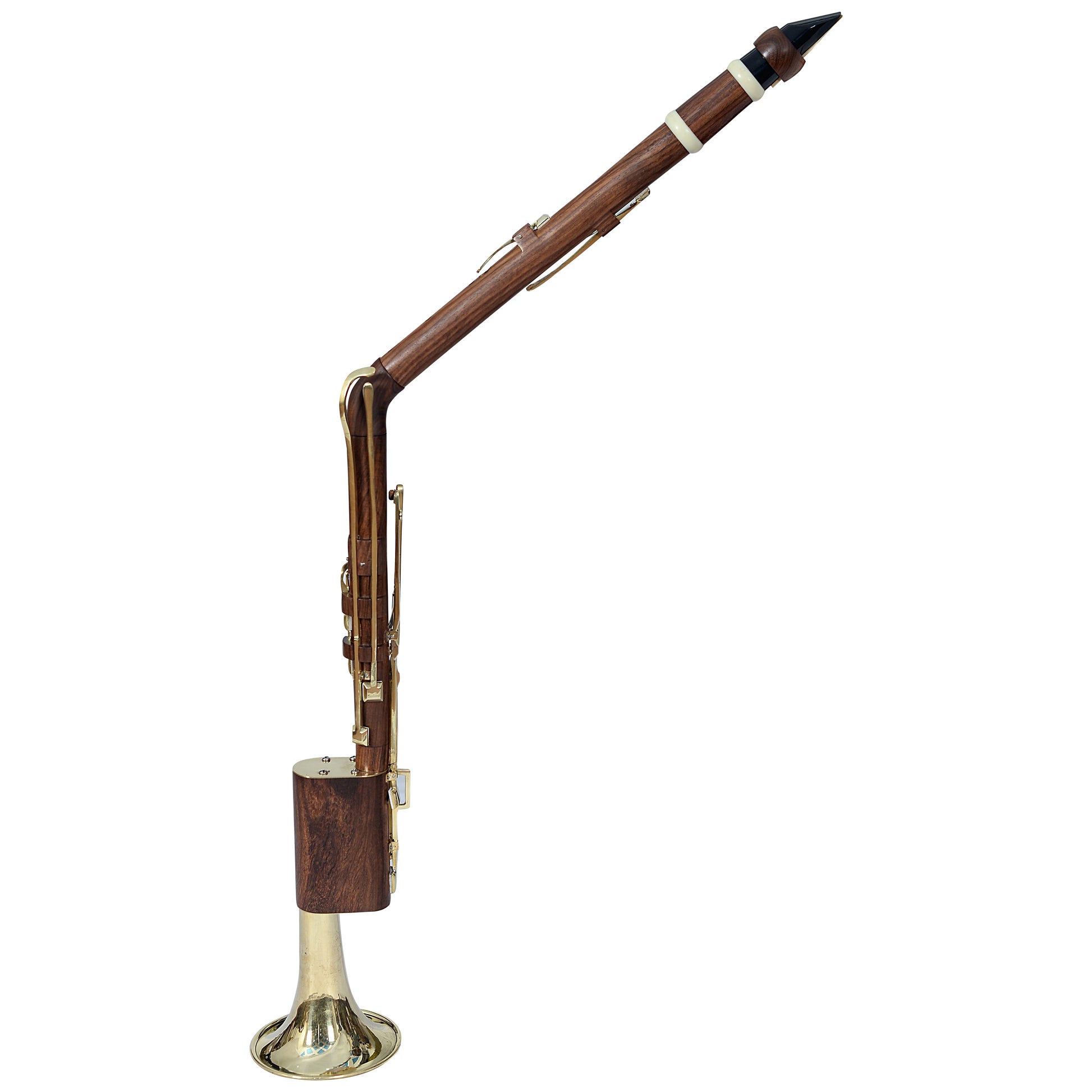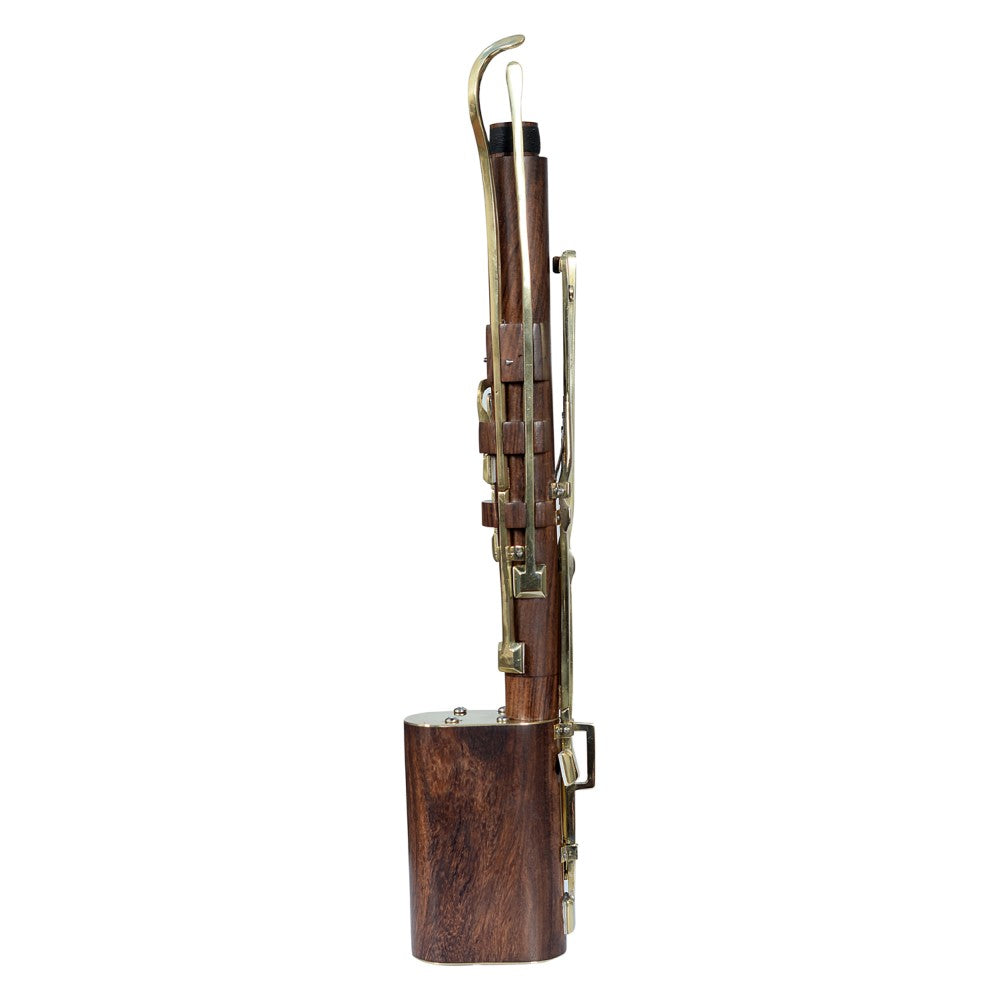 This basset horn is a reproduction of the original Johann Heinrich Grenser (Dresden, 1764-1813). The basset horn, renowned for its rich sound, is exceptionally versatile instrument. When Mozart first encountered the tone of the basset horn, it became one of his favorite instruments. He incorporated it into almost all of his compositions and even wrote specific music for it.