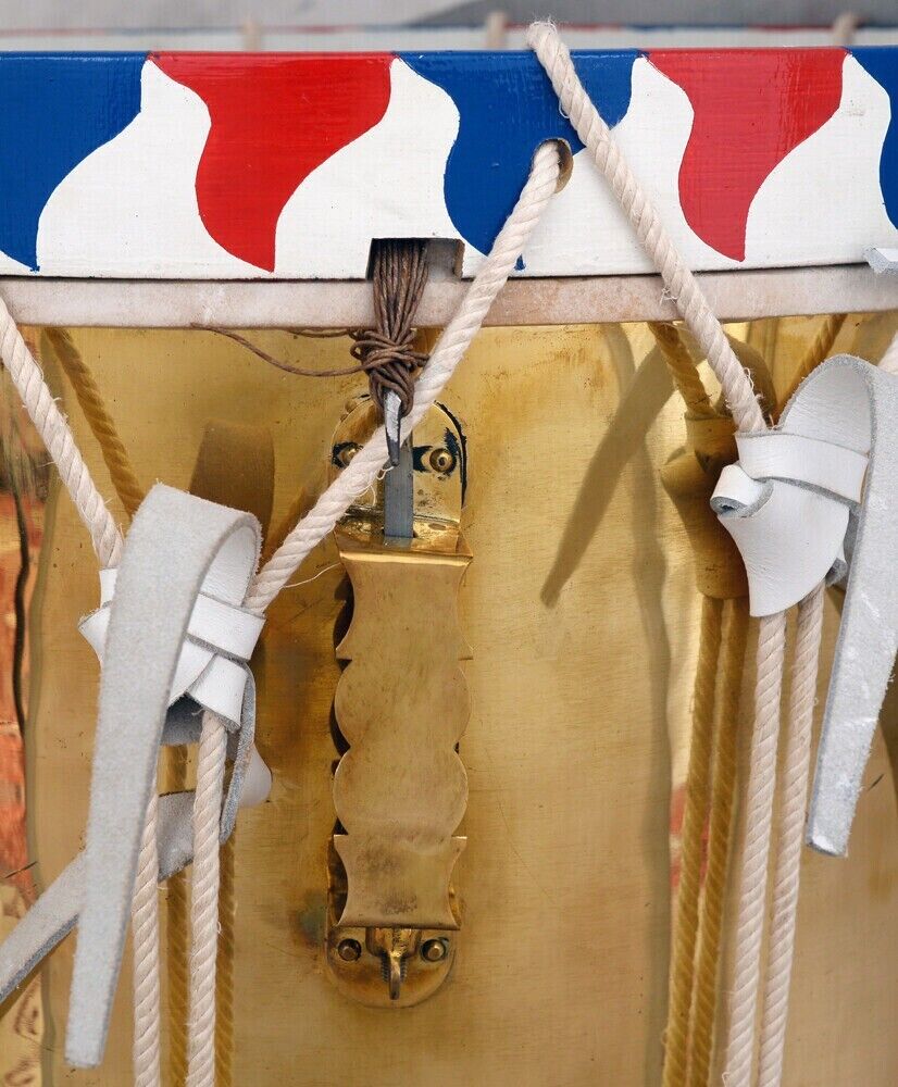 Featuring an authentic brass shell, blue, red, and white painted hoops, and classic rope tensioning, it mirrors the very drums that once echoed across European battlefields, from the Napoleonic Wars to the rise of Imperial Germany.