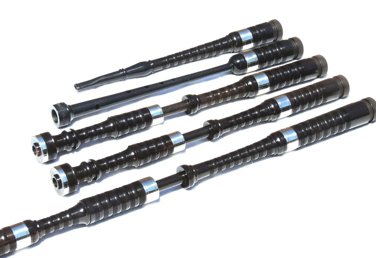 This model was originally played by a Pipe Major who competed successfully in numerous solo and Grade 1 pipe band events with the Lothian and Borders Police Pipe Band. They were also featured at several prestigious engagements, including royal functions, the Edinburgh Tattoo, and the Toronto Intercontinental Tattoo. In 2015, the original owner approached us to restore the set; as restoration was not possible, we instead reproduced the model to preserve its legacy.
