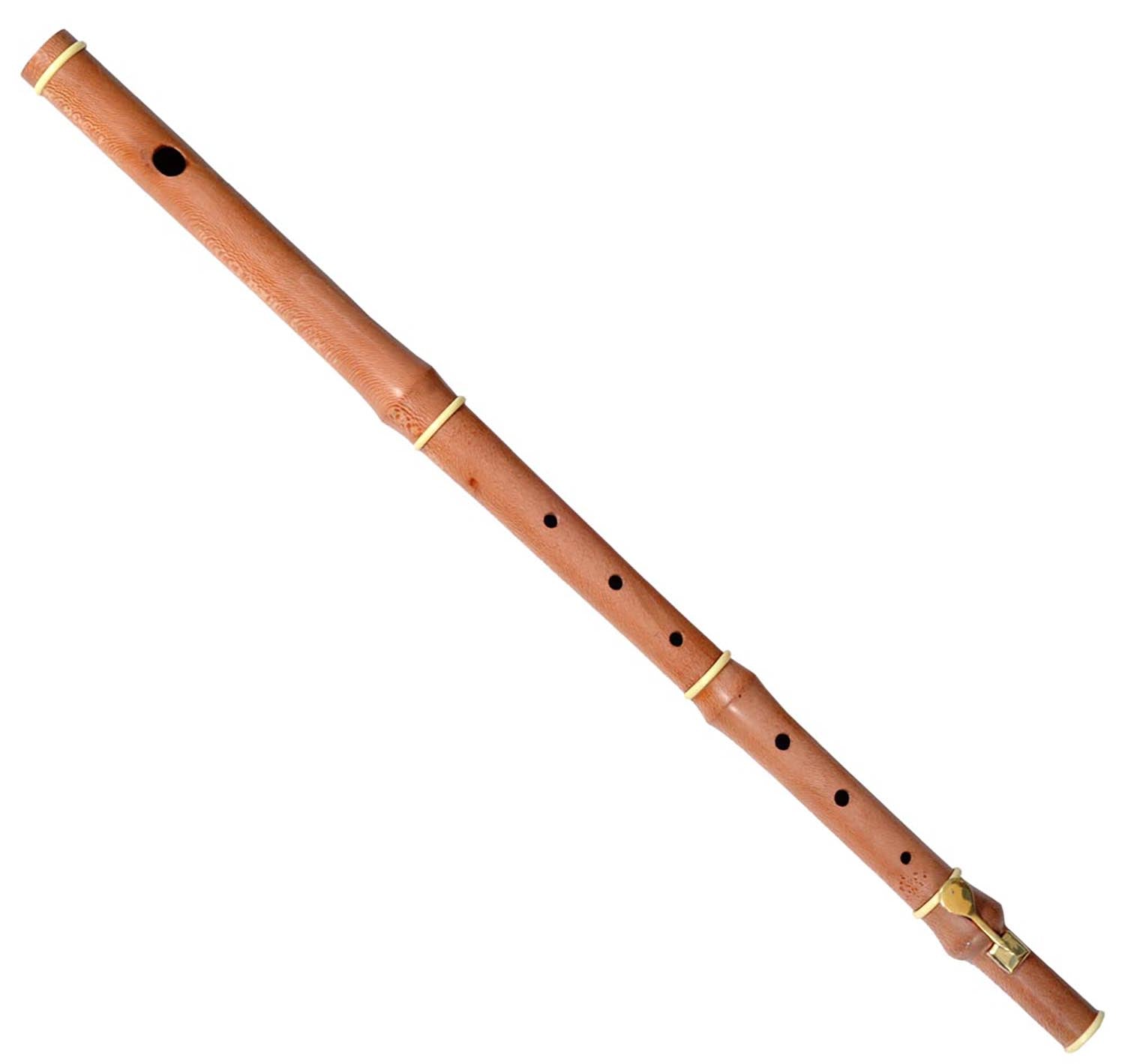This flute is a reproduction of an original Baroque flute made by D’Almaine & Co., London, a firm of instrument makers active in the late 18th and early 19th centuries. This particular model is known as a late version of the Baroque flute because of its slightly larger tone holes.