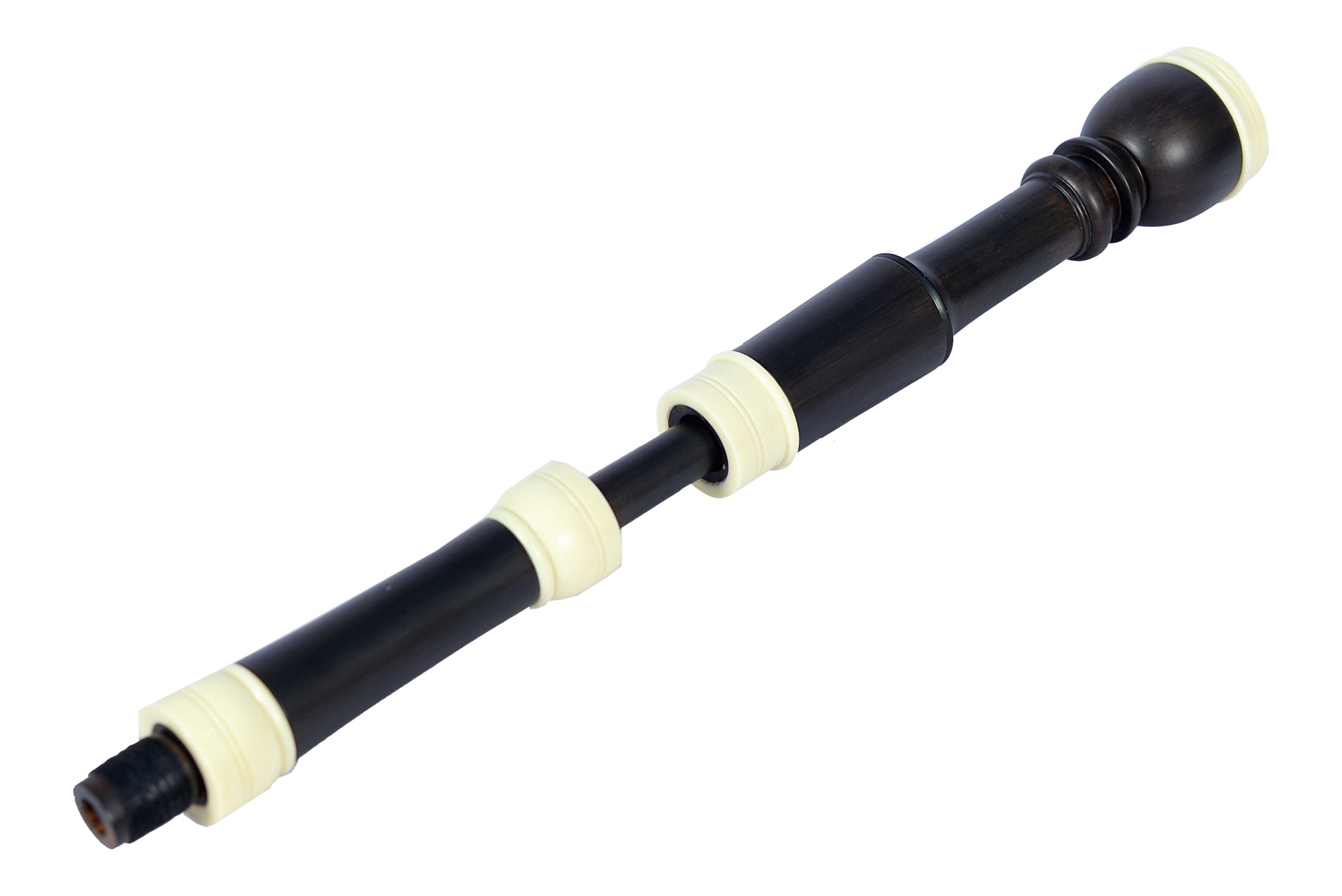 Realizzato con precisione, questo set di riproduzione utilizza legno di Cocobolo indiano stagionato sfumato nero ornato con montature e ghiere in finto avorio. Seguendo l'eredità delle pipe Peter Henderson, le scorte di droni adottano le rinomate misurazioni "Henderson bore", elevando l'esperienza di gioco complessiva.