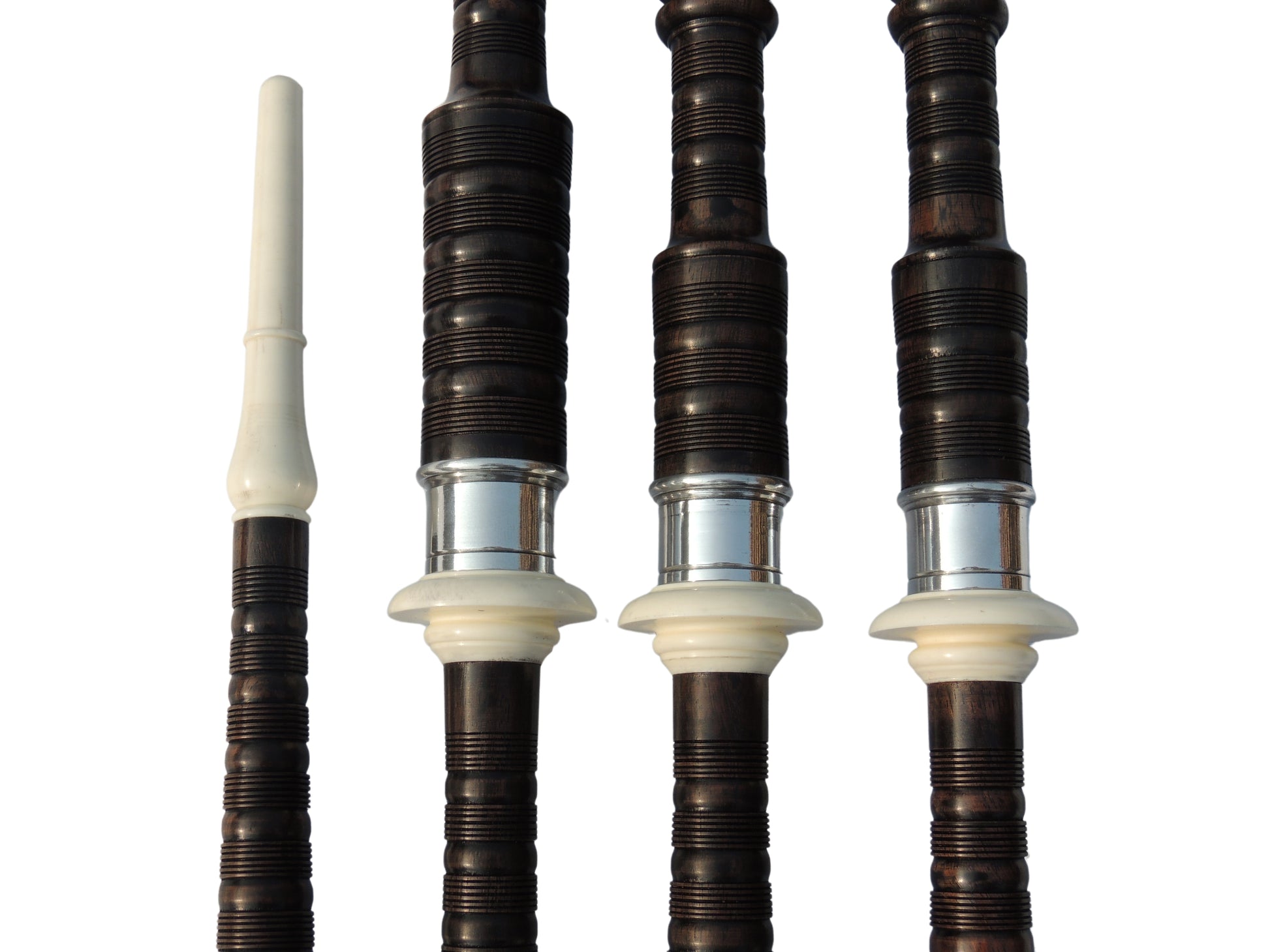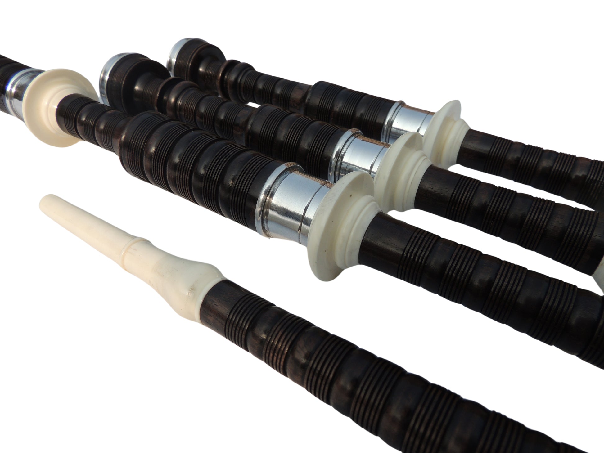 We have recently made some changes to our Bagpipes, specifically the chanter in order to improve intonation. The Chanter is now tuned on a R.T. Shepard Chanter Reed at A=466hz to suit modern standards. We've designed the chanter to ensure minimal or no taping is required.